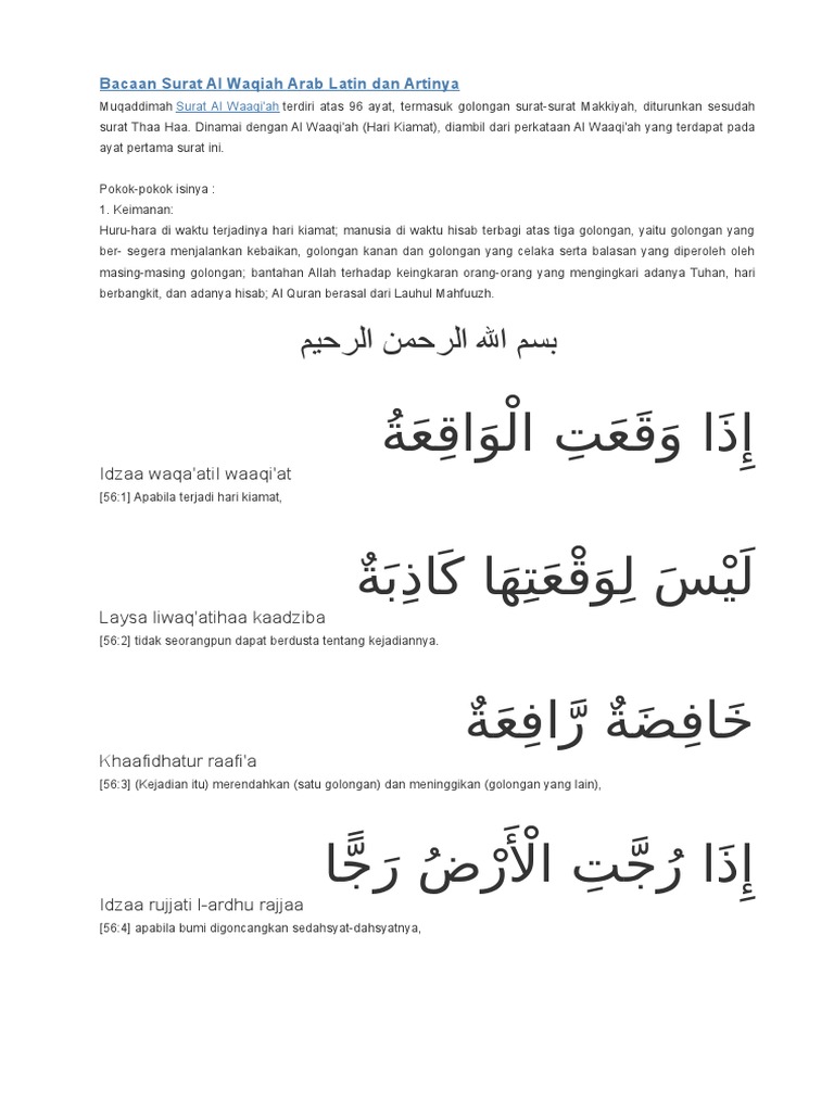 Bacaan Surat Al Waqiah Arab Latin Dan Artinya | PDF